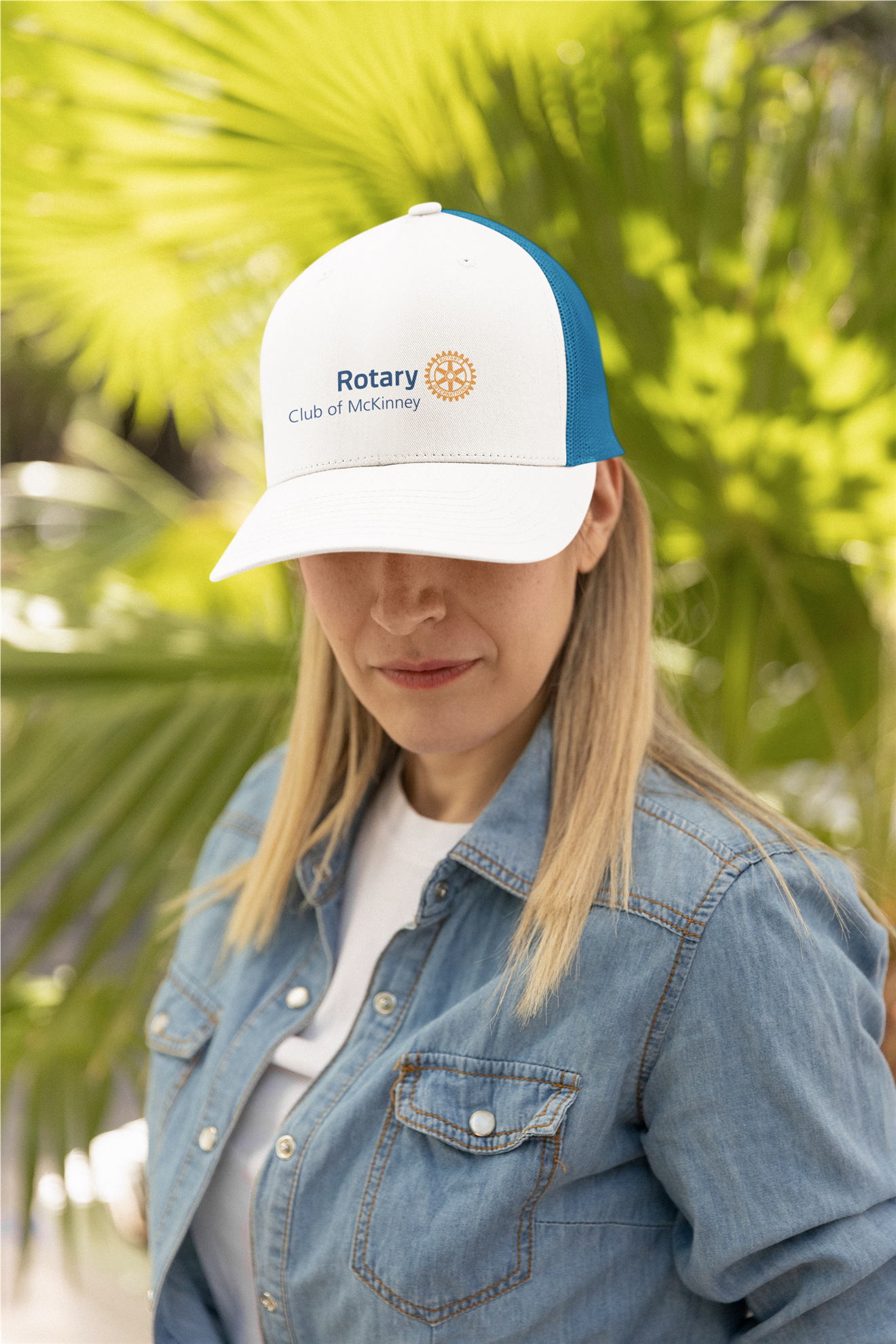 Premium Rotary baseball cap with customizable embroidery or print. Adjustable fit, breathable, perfect for events and outdoor service.